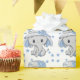 Adorable baby elephant sitting happy, with his little hat and stars.