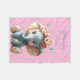 Fleece blanket with an adorable little baby Elephant with big pink ears,flowers on her head and pretty butterflies. Personalise name, date and font.