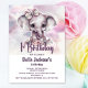 Cute Baby Elephant Girl 1st Birthday Party Invitation