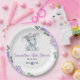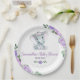 Cute Baby Elephant Girl Purple Floral Paper Plates