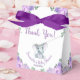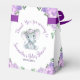 Cute Purple Floral Girl Baby elephant with beautiful floral crown in purple green and grey colours elegant baby shower paper favour box customisable with name/date and thank you message.