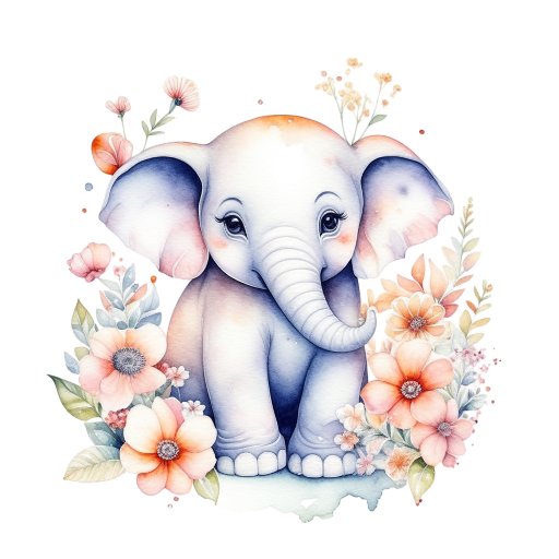 It's a Girl! A sweet baby elephant surrounded by pink and coral flowers watercolor illustration personalised baby shower stickers for a baby girl.