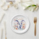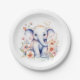 A sweet baby elephant surrounded by pink and coral flowers watercolor illustration baby shower paper plates for a baby girl.