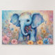 Cute Baby Elephant In a Pastel Daisy Garden Jigsaw Puzzle