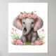 Cute Baby Elephant Pink Flowers Nursery Poster