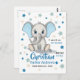 Cute Baby Elephant with Blue Ears Boy Birth Stats Postcard