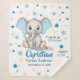 Cute Baby Elephant with Blue Ears Boy Birth Stats Sherpa Blanket