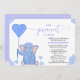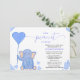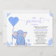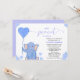 the design shows a baby shower invitation in blue and black typography and calligraphy at the right side and a cute baby elephant with blue heart at the left side. the design is cute and will be perfect for your baby shower.