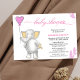 the design shows a cute baby animal with pink love at the left side and a baby shower invitation in pink and black lettering at the right side. this design is extremely cute and will be ideal for your baby shower.
