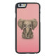 Cute Baby Elephant with Reading Glasses Pink Carved Wood iPhone Case