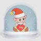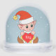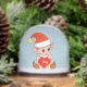 Cute baby elf dressed in red and text Snow Globe. Text can be personalised. Ideal for christmas, birthday, party favour, baby shower favour and more.