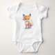 A very cute baby bodysuit with an illustration of a smiling baby fox.