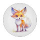 A very cute round cutting board with an illustration of a smiling baby fox.