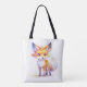 A very cute shoulder tote bag with an illustration of a smiling baby fox.