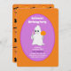 Modern cute baby ghost and pumpkin Halloween Birthday party invitation. Text is ready to be personalised.