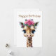 Cute Baby Giraffe with Flowers and Holly Holiday Card