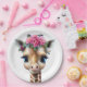 Cute Baby Giraffe with Flowers and Holly Paper Plate