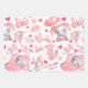 Celebrate a precious arrival with this adorable baby girl wrapping paper, featuring charming pastel pink elephants, hearts, balloons, and sweet “It’s a Girl” messages throughout the design.