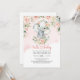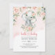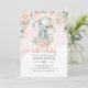 Cute baby girl elephant blush flowers gold invitation