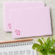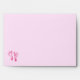 A cute baby shower envelope for a precious baby girl with a pastel pink argyle pattern background, embellished with sweet little baby footprints and a trendy pink ribbon tied into a bow. Flat printed image, not actual ribbon.