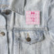 A cute 'It's a girl' birth announcement button with a girly pink argyle pattern background, embellished with sweet little baby footprints and a trendy pink ribbon tied into a bow. Perfect party favour for a little girl baby shower.