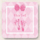Cute Baby Girl Footprints Birth Announcement Coaster