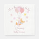 This baby shower napkin features a sweet, cute fox theme in shades of pink. A baby girl fox is sleeping and being carried by balloons and surrounded by stars.