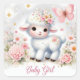 Cute Baby Girl Lamb with Flowers and Butterflies Square Sticker