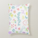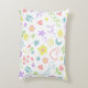 Cute Baby Girl Nursery Accent Pillow 16" x 12". Pastel colours, hand drawn childish pattern with stars, hearts, flowers, butterflies etc, words LOVE, SMILE, JOY etc. Custom name. Cute & lovely.