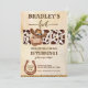 First rodeo little cowboy cute baby horse in a felt hat 1st birthday invitation. Rustic vintage western style.