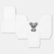 This cute design features a small koala bear cub with large ears and deep black eyes. The koala is sitting down with its paws beside each other and is looking forward which creates a symmetrical pattern. The over sized head and small body along with the details in the fur create a beautiful combination of a teddy bear cartoon and realistic look. This unique design is an adorable example of this wonderful and curious creature.