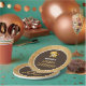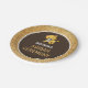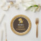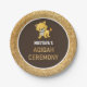 Elegant paper plates featuring an adorable little cub with vibrant typography on a dark brown and faux gold glitter background.