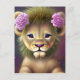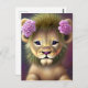 Cute Baby Lion with Pink Flowers Graphic Postcard
