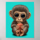 This adorable design features a small baby monkey holding on to a basketball. The monkey is looking forward with its head tilted slightly giving it a cute and curious look. This sporty monkey design is perfect for all basketball fans.