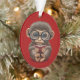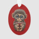 Cute Baby Monkey Reading a Book on Red Ornament