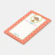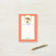 Baby shower sticky notes in large size. With a cute baby monkey with a pacifier in his mouth Inside an olive green circle. The background is an orange and white polka dot pattern. The letters in the word baby are hanging down from a boho style arrow. Text says thank you and is ready to be customised with your guest of honour's name.