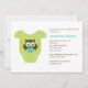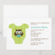 Stylish and sweet baby shower invitations feature an adorable vector illustration of a baby creeper or t-shirt with a cute baby owl. Boys, girls or neutral version of this same invitations are available in our store. Custom colours available by request.