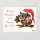 Cute Baby Owl In Christmas Hat and Gift - Cartoon Postcard