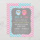 Cute Baby Owl Theme Chevron Gender Reveal Party Invitation