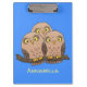 Cute baby owl trio cartoon illustration clipboard