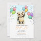 Cute Baby Panda Balloon 1st Birthday Party Peach Invitation