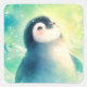 Cute Baby Penguin Gazing at Aurora Borealis Sky Square Sticker