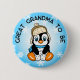 Cute hand drawn baby penguin in scarf and hat with snowflake background. Winter themed Great Grandma to be baby shower button.