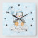 A Cute baby penguin on a cloud wall clock - ideal for any nursery or child's bedroom. Features a penguin sitting on a cloud holding a balloon. The clock can be personalized by changing the name . Great to give as a gift for a baby shower.