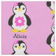 Make pjs, bedroom decor, bags, and so much more with this fabric that features adorable baby penguins with pink flowers! Customise with a special message or name.