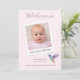 Modern Elegant Minimalist Stylish Instant Photo, 3 photos, multiple photos soft pink, trendy colour, girly Birth Announcement Card Thank you Card, Introducing card, Welcome, welcoming card baby girl, baby boy with adorable watercolor hummingbird in pink lilac pastel colours. Personalise this beautiful card with your newborn baby photos and birth stats. Please replace the sample photos with your own. Photos sample courtesy of https://pixabay.com/es/users/amyelizabethquinn-52073/