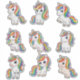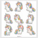 Sprinkle some magic and charm on your belongings with this delightful set of custom-cut vinyl stickers! This collection features nine adorable, full-body baby unicorns, each sporting a fluffy mane and tail in bright, pastel rainbow colors and posed in various cute ways. The cartoonish, sweet style makes these mythical creatures perfectly appealing for younger children and any unicorn enthusiast.