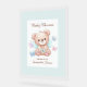 Create a cute baby shower sign for your party. The front features the name of the special event along with the name and monogram of the mum-to-be. Easy to use template. Bear & Butterflies design. Use the template to personalise.