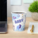 Adorable baby shower design featuring a cute baby, baby items, and a stork carrying a newborn. Perfect for baby shower gifts and party favors.