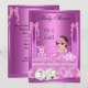 Elegant Cute Baby Shower Baby Girl puppy dog Animal Pink Purple White Print Lace Pearl Lace Bow Ribbon invitation, new baby, baby girl